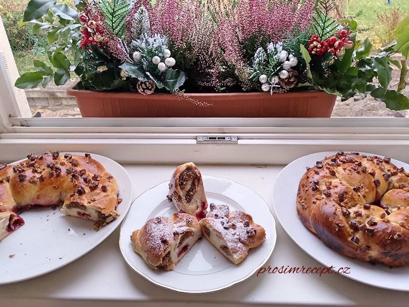 Věnec nadívaný ořechovou nádivkou s perníkovým kořením, pečený v remosce, je z těsta s pšeničným kvasem