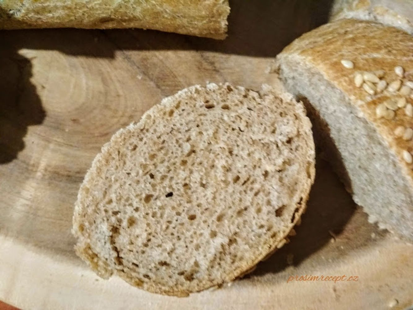 Bagety s menším množstvím droždí a s celozrnnou moukou. S malými očky, krásně nadýchané.