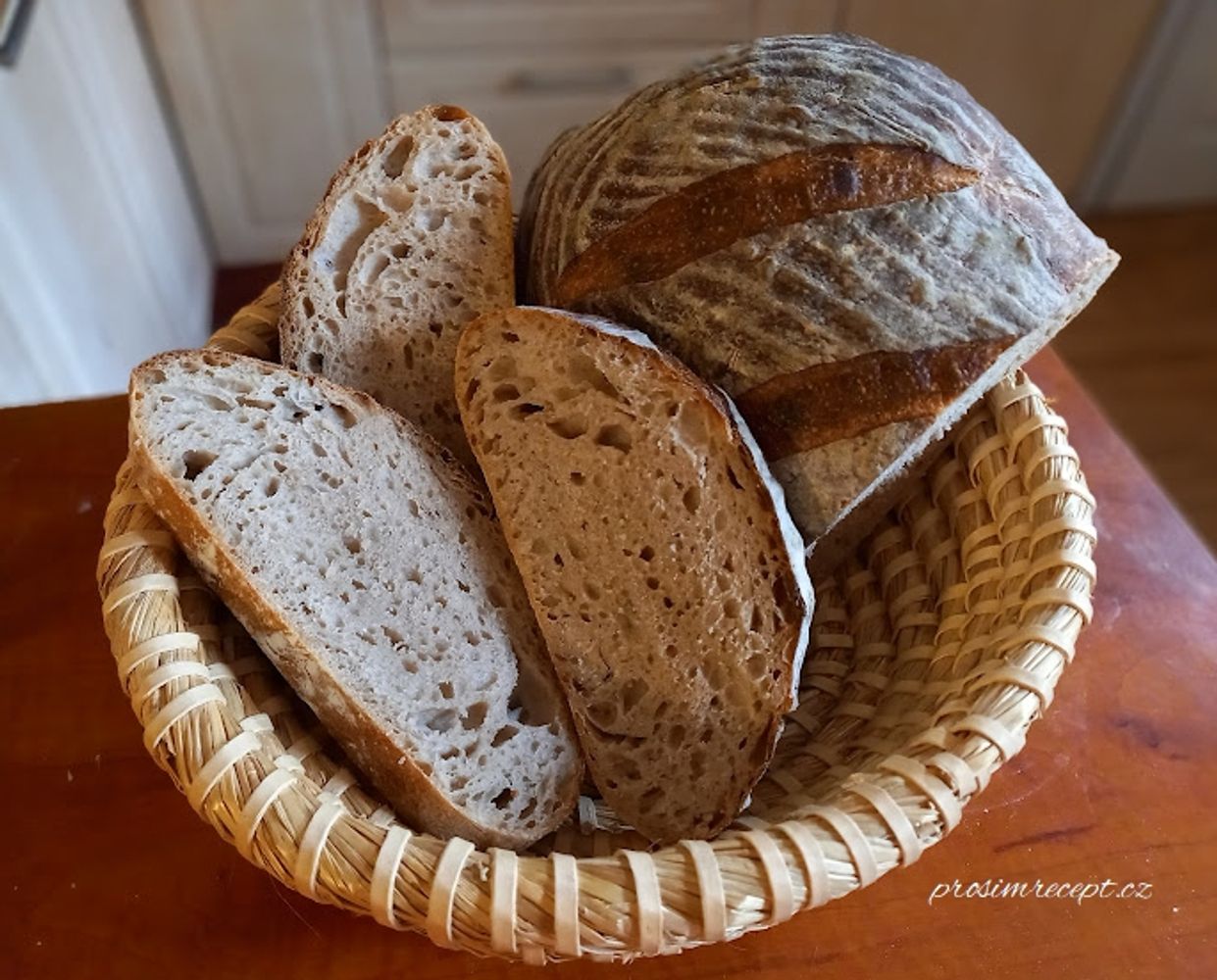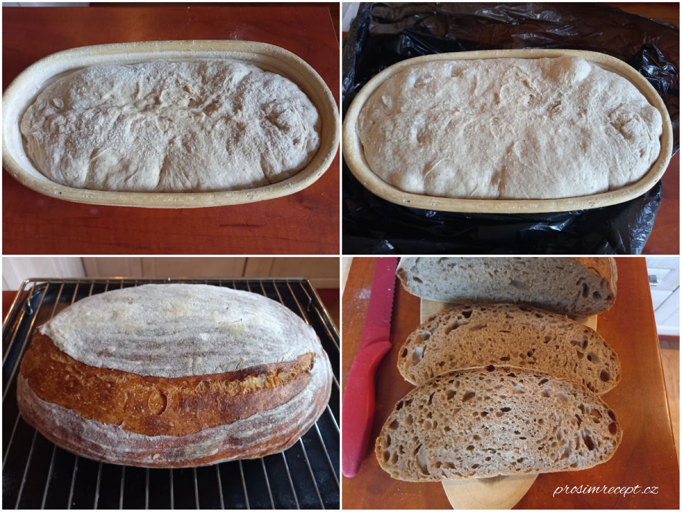 na těsto potřebujeme: - 360 g rozkvasu, 600 g pšeničné chlebové mouky