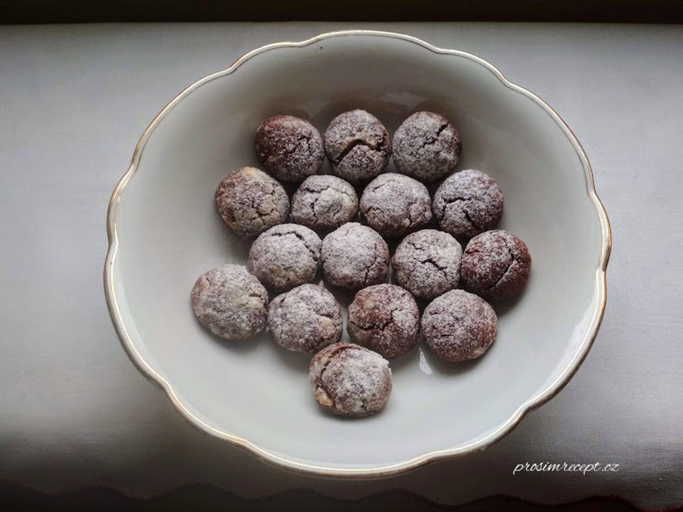 Před pečením kuličky obalíme v cukru a z trouby vyndáme popraskané sušenky.