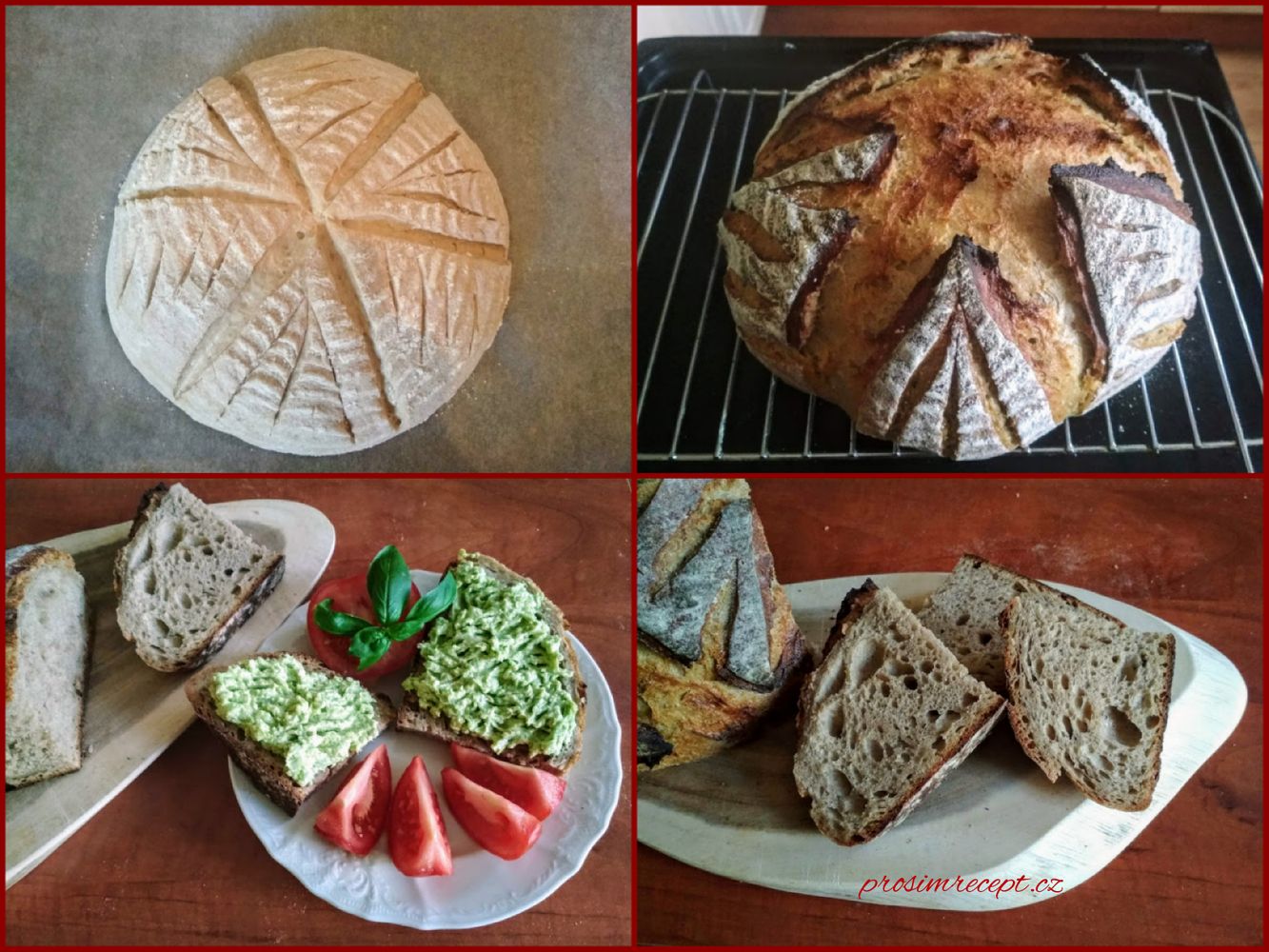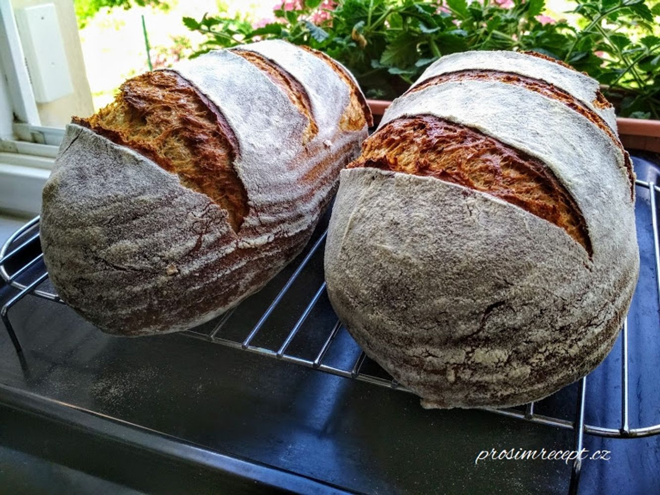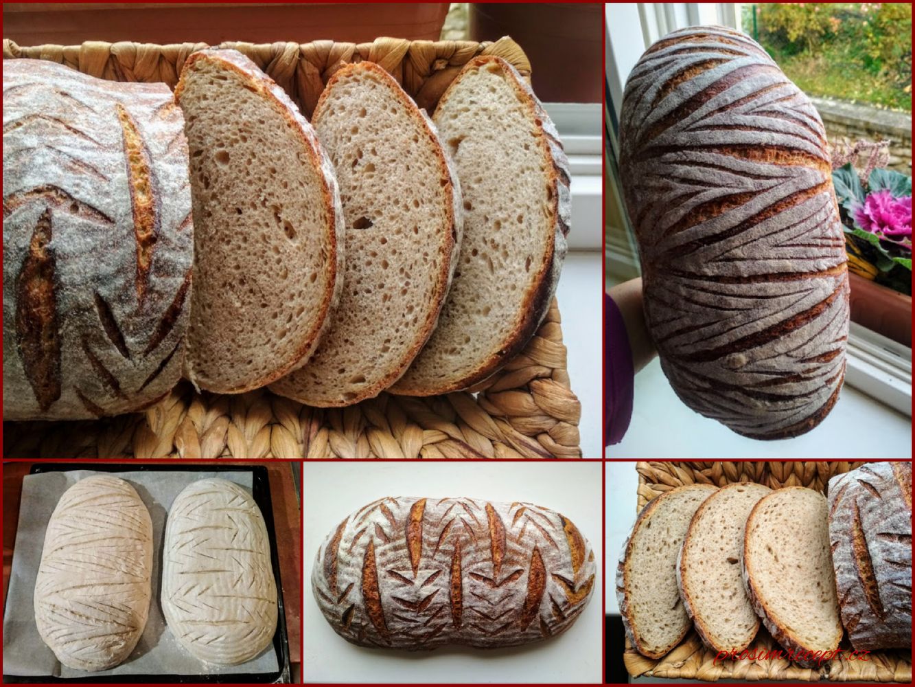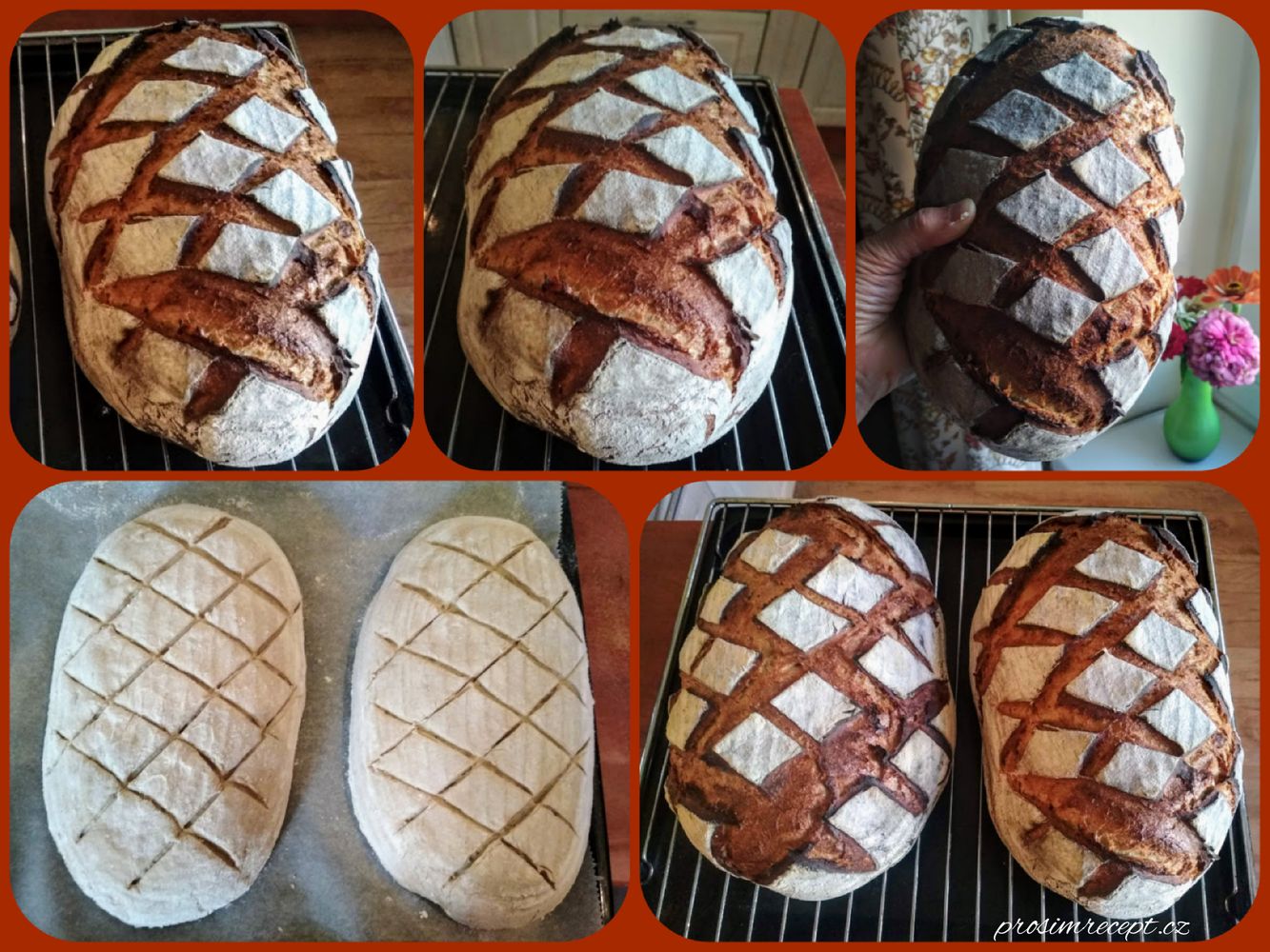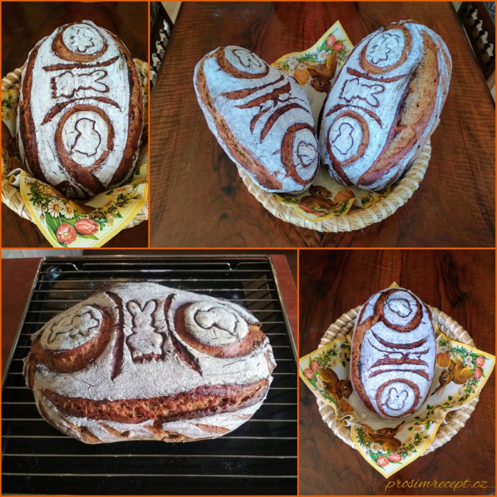 Pečeme na kameni, trouba rozpálená na 270 °C, pak s párou 230 °C / 20 minut, bez páry 200°C / 5 minut a 190°C / 20 minut.