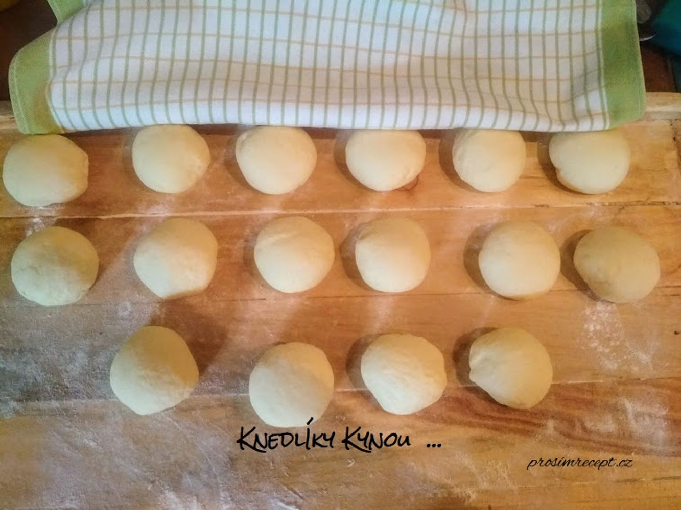 Vykynuté těsto rozdělíme na 16 kousků, uválíme kuličky a necháme vykynout, asi 30 - 45 minut.
