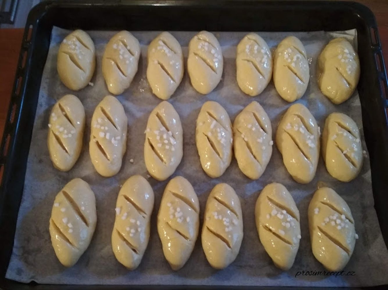 Necháme kynout v teple 3 hodiny, během kynutí těsto asi dvakrát přeložíme, kyne v teple asi 6 hodin. Těsto rozdělíme na 20 kousků, každý ještě přeložíme a necháme asi 30 minut odpočinout.