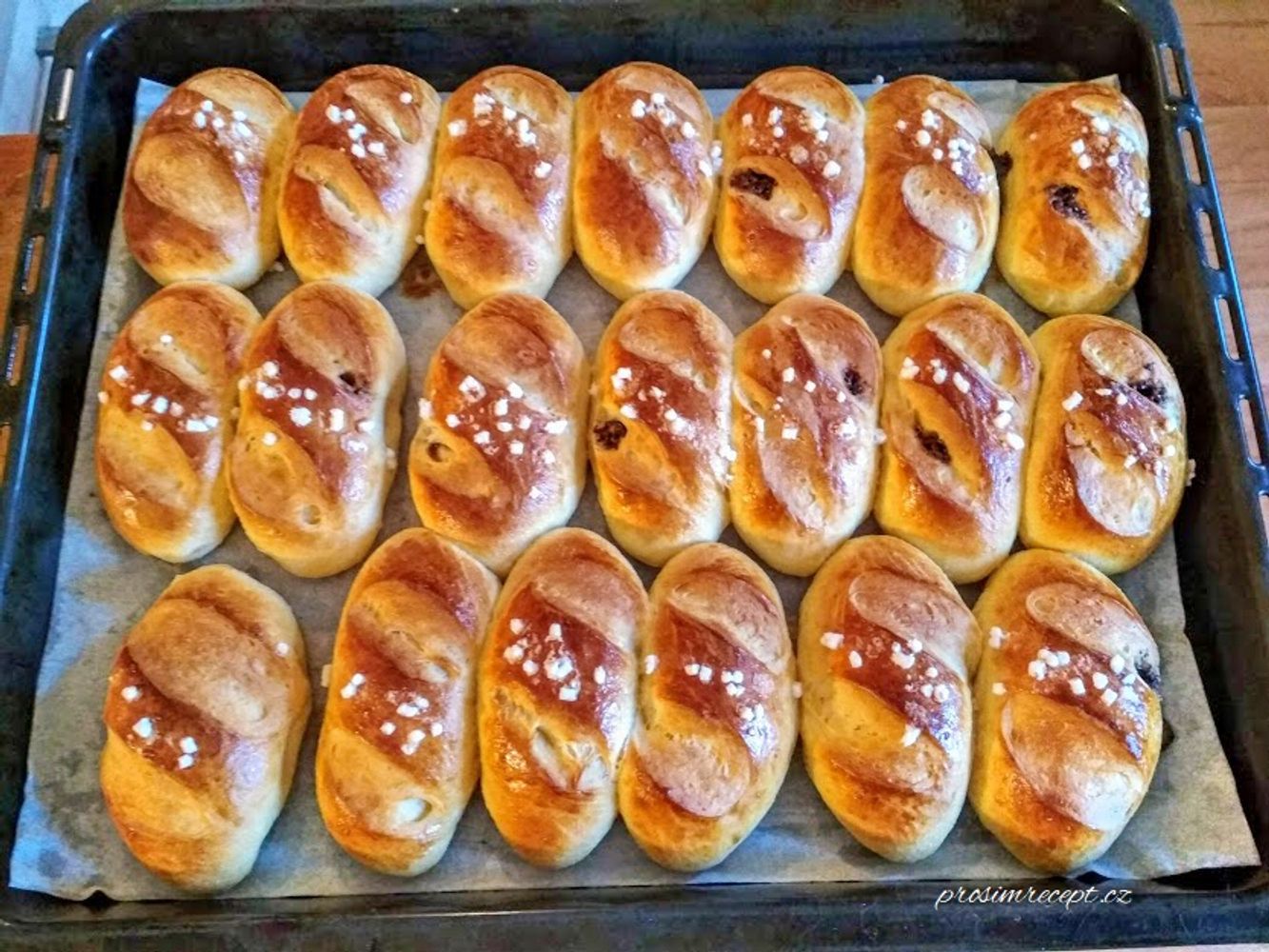 Kynutí trvá 4 - 6 hodin, podle teploty v místnosti. (Při 17°C kynuly houstičky 9 hodin.) Dobře vykynuté potřeme rozšlehaným vejcem, nařízneme žiletkou a posypeme granulovaným cukrem.