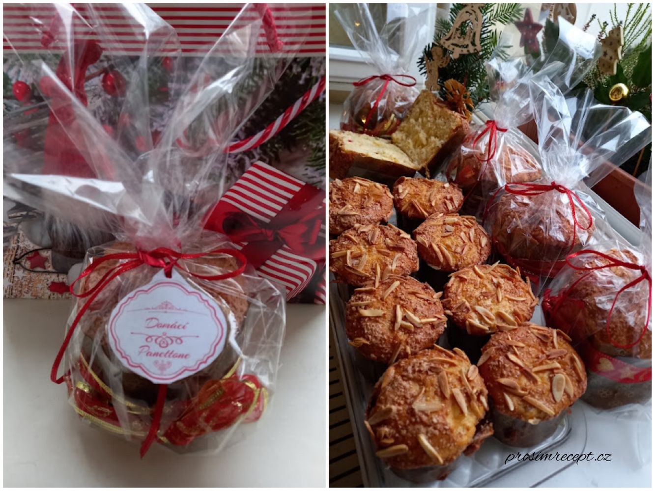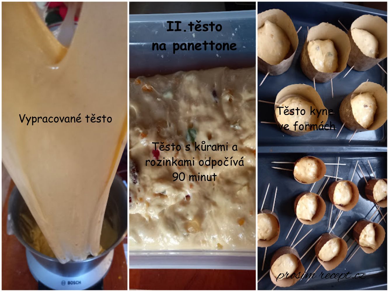 Ty vložte do připravených forem, jež už dopředu můžete propíchnout špejlemi – aby se horké panettone snáz obracelo.