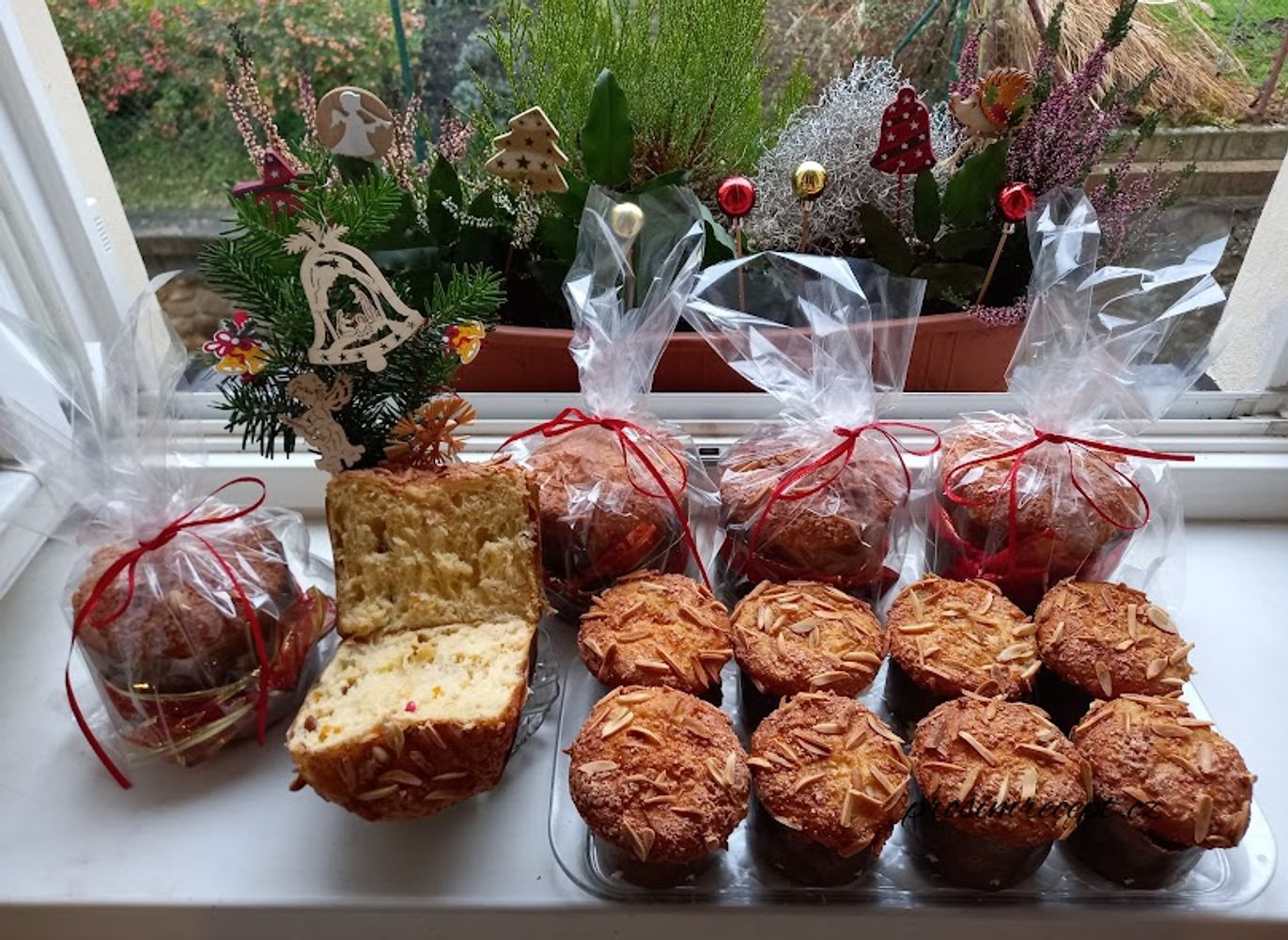 z této dávky je 5 ks - forma Panettone vysoký Soft 300gr a do jedné formy 245 g těsta a 6 ks - forma Panettone vysoký Soft 100gr, do jedné formy 70 g těsta.