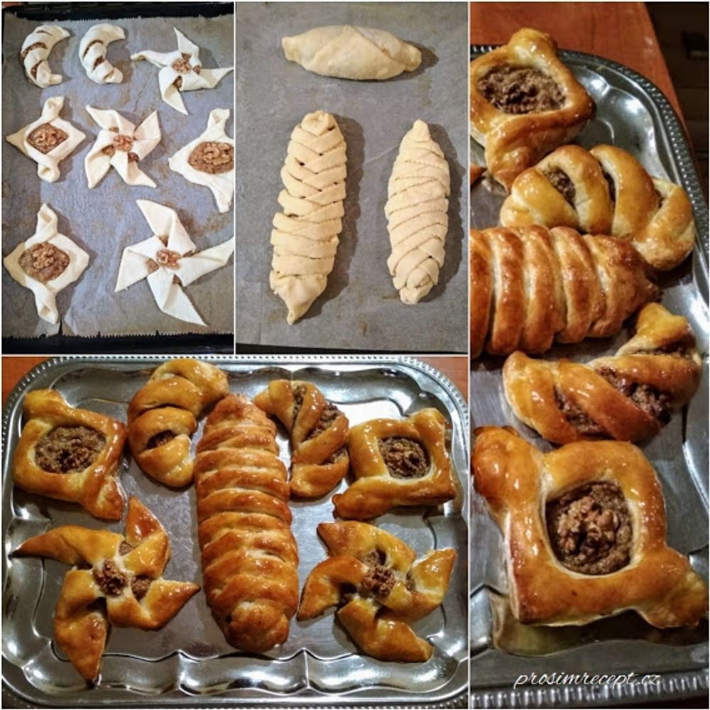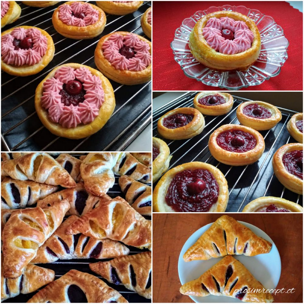 Z těsta jsem pekla různé druhy pečiva, třeba plněné ořechovou nádivkou a potřené karamelem, plněné nádivkou z višňového pudinku a višňovým krémem.