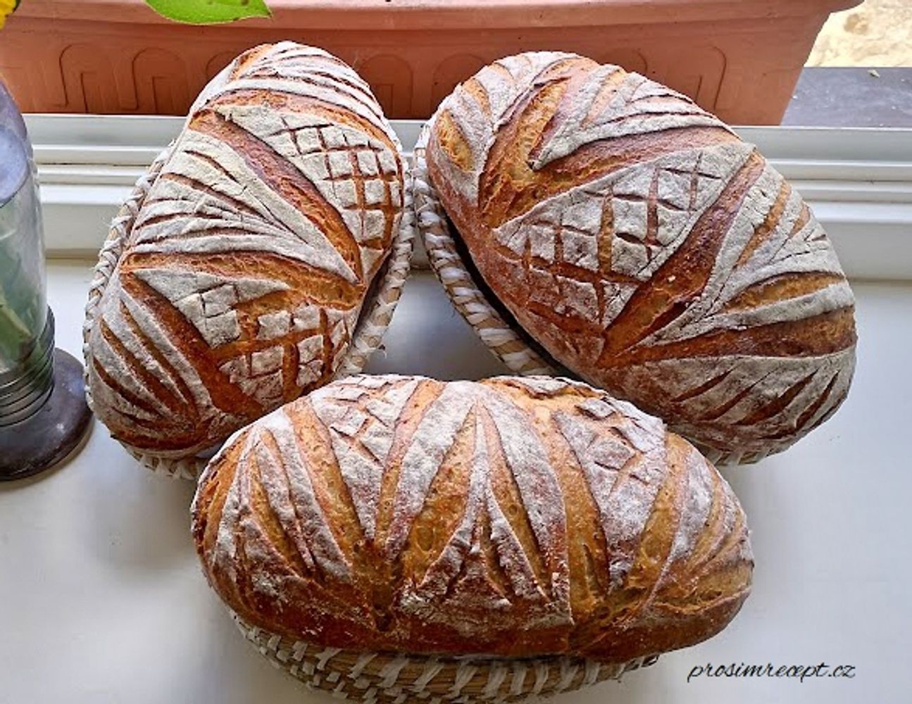 Z množství uvedeném v receptu můžeme upéct dva větší nebo tři menší chleby.