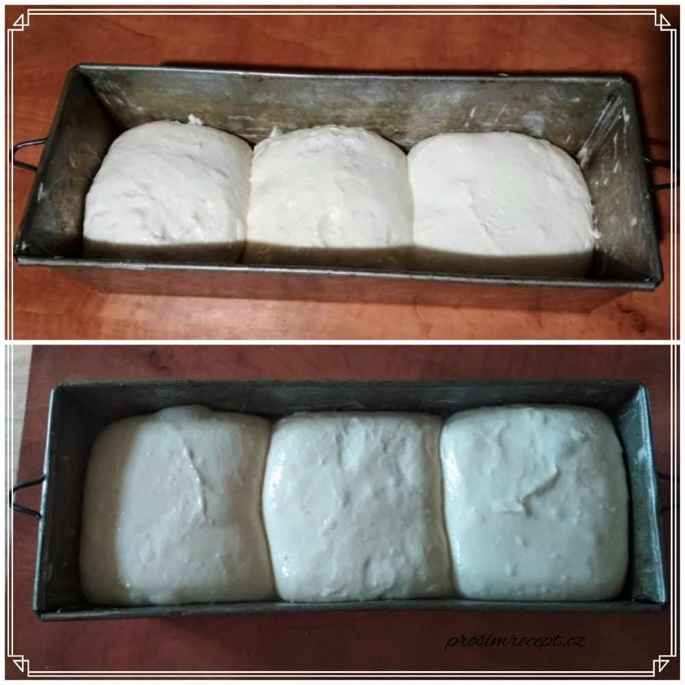 Těsto rozdělíme na tři kusy, ty stočíme a vložíme do máslem vymazané chlebové formy. Formu s těstem vložíme do pytle a necháme odpočívat v lednici.