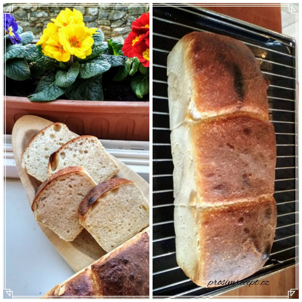 Chleba ve formě pečeme v troubě rozpálené na 250 °C ( se zapařením) 20 minut, potom vyvětráme a pečeme na 230 stupňů 5 minut, na 200 °C 5 minut. Chleba vyklopíme z formy a dopečeme na mřížce, 15 minut a 190 °C.