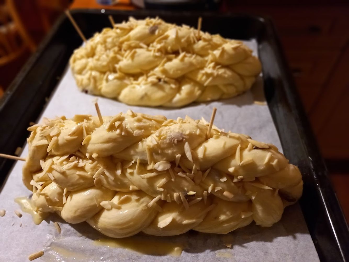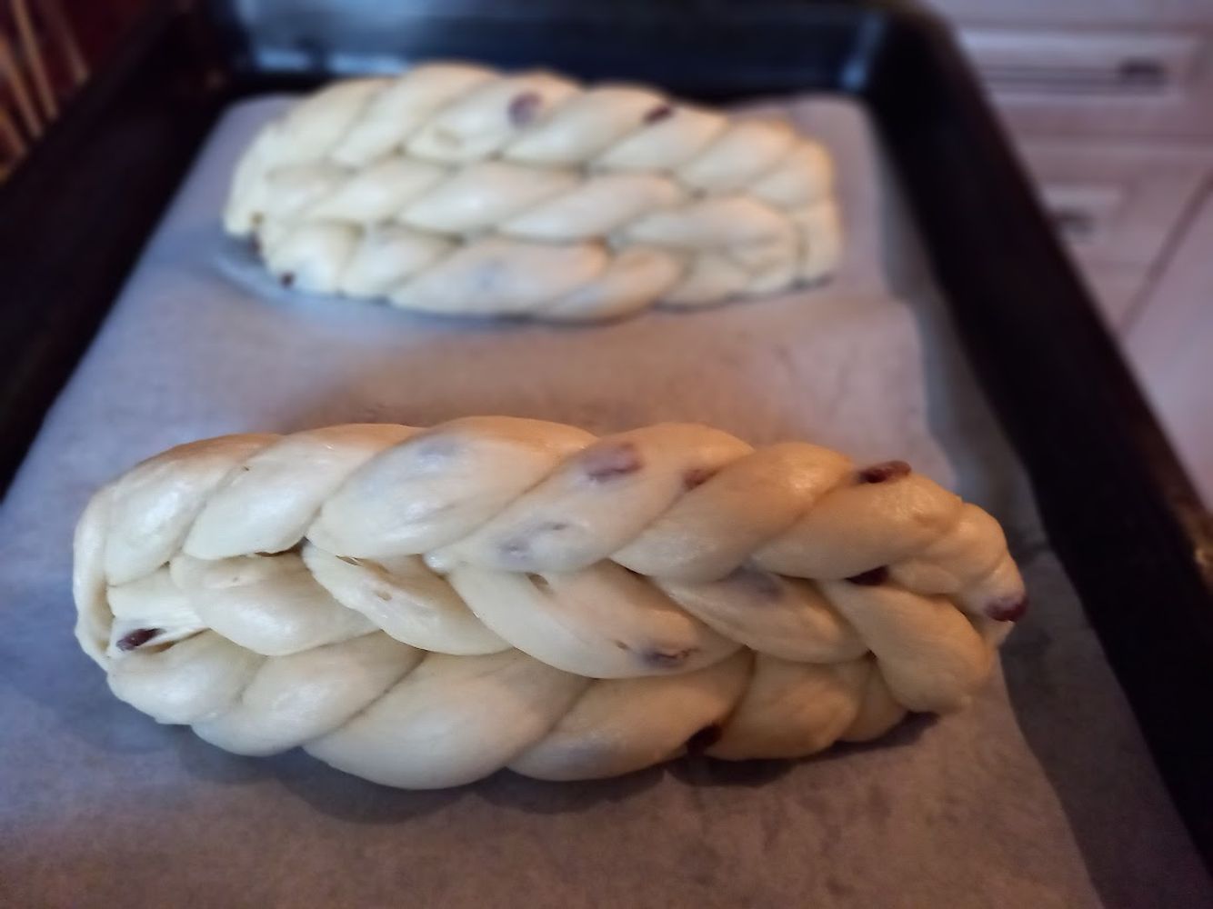 Stejně upleteme i druhou vánočku, přikryjeme utěrkou a necháme vykynout, trvá to cca 2 hodiny.